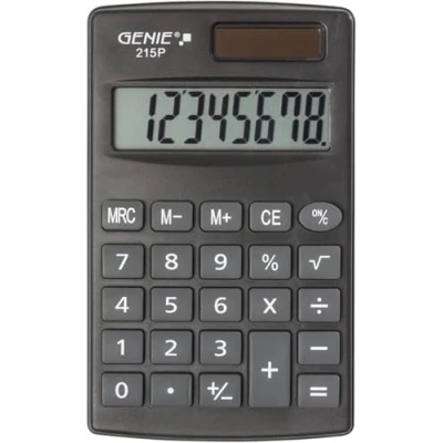 Genie 215 P8 Digit Calculator Dual Power (Solar and Battery) Compact Design Grey