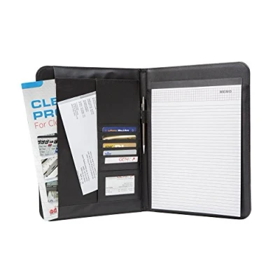 Genie A4 Elegant Writing Case Wiesbaden, Extra Thin and Durable, Leather Effect Includes Desk Pad, Pen Holder, Pocket Card, Business Card Holder Black