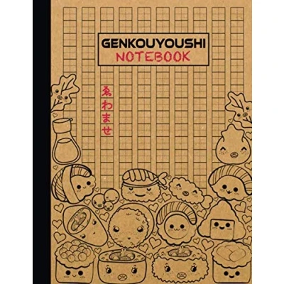 Genkouyoushi Notebook: Japanese Writing Practice Notebook. Tategaki Style for Hiragana, Katakana, and Kanji Characters. Sushi Design. Large Print 8.5 x 11 inches