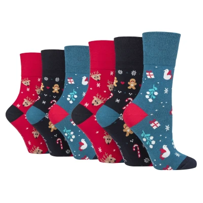 Gentle Grip 6 Pairs Ladies Christmas Socks Womens Novelty Design Xmas Gift (4 8, Blue/Red/Grey)