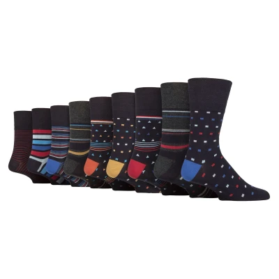 Gentle Grip 9 Pair Multipack Mens Bamboo Socks Soft Loose Top Non Elastic for Swollen Legs (6 11, SOMRM080910)