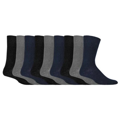 Gentle Grip 9 Pairs Mens Non Elastic Cotton Socks Soft Loose Top Diabetic Friendly (6 11, BNG)