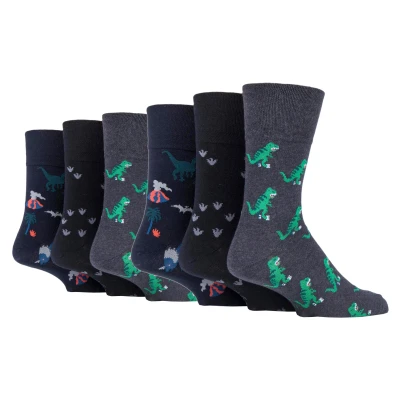 If you're looking to add some fun and colour to your wardrobe, look no further than Gentle Grip's 6 Pack Patterned Socks. The pack includes 6 pairs of socks with a choice of fun and funky patterns like: Deep Sea, Dinosaurs, Highlands and more! These socks feature the Gentle Grip Honeycomb Top which helps aid circulation which makes them extremely comfortable to wear, especially if you struggle with circulatory problems, swollen legs, ankles and feet. They have been designed with care so that they will last for years to come. This NEW collection of designs are as good as they feel too, made from soft and comfortable cotton rich yarn. Help keep your feet odourless. All SockShop Gentle Grip socks are built to take care of your legs, comfortably moulded to their natural contours without leaving any of these constriction rings. With the soft grip non elastic tops that do not fall off during wear helps avoid restriction and pressure hotspots. The flat seamed toes for extra wearability will make sure your feet stay comfortable all day long whether you're going out on the town or simply relaxing at home. These are Men’s One Size: 6-11 UK, come in 4 great patterns and are a 6 pair pack. They are made from: 76% Cotton, 19% Polyester, 3% Nylon, 2% Elastane and are Machine Washable.