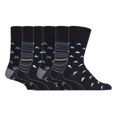 Gentle Grip NEW: 6 Pairs Men's No Elastic Socks 11 uk, 39 45 eur (MGG547 Bicycles/Cars)