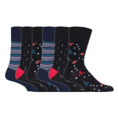 Gentle Grip NEW: 6 Pairs Men's No Elastic Socks 11 uk, 39 45 eur (MGG548 Space/Stars)