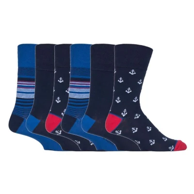 Gentle Grip NEW: 6 Pairs Men's No Elastic Socks 11 uk, 39 45 eur (MGG549 Anchors)