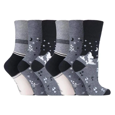 Gentle Grip Womens 6 Pairs Ladies Non Elastic Socks GG203 Grey Cotton Size UK 4 8