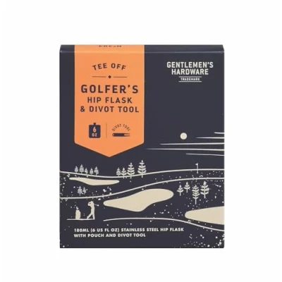 GOLFER'S HIP FLASK & DIVOT TOOL SET An ideal gift for the golf lover who needs a little liquid courage on the course HOLDS 180ML of your favorite libation; have a well-deserved sip of your favorite tipple after a long day on the green CRAFTED OF STAINLESS STEEL High quality flask with a screw top lid; encased in a blue faux leather sleeve HANDY DIVOT TOOL To repair pitch marks during your game THE GENTLEMEN'S HARDWARE COLLECTION offers stylish everyday goods designed for stylish city dwellers and adventure seekers – mix and match our unique giftable tools, office supplies, sports-themed items, outdoor products, and more, Weight: 0.5 Pounds, Manufacturer: DesignWorks Collective