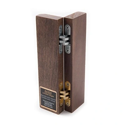 Soss concealed hinge Ideal for either timber or metal doors where robust usage required Concealed installation acts as a vandal deterrent Beautiful when opened & invisible when closed Fixing screws supplied: - 4 x countersunk head Ø 2.4 x 20 mm For door thickness 13-38 mm Zinc alloy body, steel links Opening angle 180 degree one way Brass or nickel plated finish Order qty: 1 hinge, Manufacturer: Solmer LTD