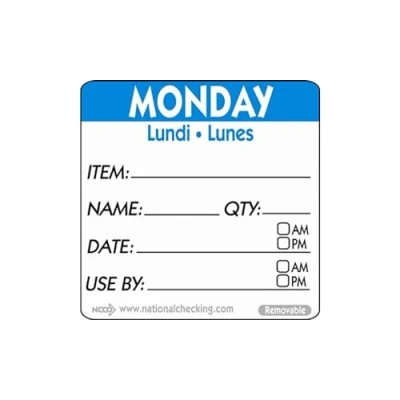 Genware NEV RIDU2201R Day Label, 50 mm, Monday Removable (Pack of 500)