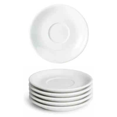Built for hospitality use. Vitrified porcelain hotelware designed to perform in busy cafés, restaurants, hotels and catering environments while maintaining a clean, premium presentation. Rolled edge for improved chip resistance. Reinforced rim helps reduce edge chipping during service, washing and stacking, keeping your crockery looking newer for longer. Versatile 16cm size (6.25"). Ideal for coffee, tea and speciality drinks, providing a stable base with room for spoons, biscuits or accompaniments for a better guest experience. Easy-care and service ready. Dishwasher safe for fast turnaround and also suitable for microwave, oven and freezer use for maximum kitchen flexibility. Pack of 6 for consistent table settings. Ideal for stocking up in commercial environments, replacing broken pieces, or maintaining matching cup and saucer service at home.