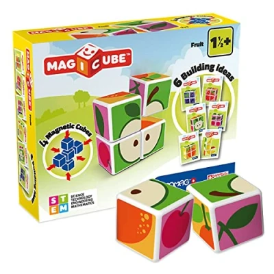 Magnetic construction system The set contains four magnetic cubes and three cards The cubes stick to each other on any side Magicube develops creativity and motor skills The sets are compatible with each other magnetic engineering - this set contains 4 magnetic cubes with six different building ideas. build an apple, cherries, pear, grapes, banana and a strawberry. educational and stimulating - each year, geomag introduces new and innovative stem toys that entertain, delight, and stimulate young and growing mental faculties. assuring safe play – geomag manufacturing complies with the most rigorous european and international safety standards., Manufacturer: Geomagworld