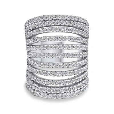 Geometric Fashion Cubic Zirconia Pave CZ Full Finger Armor Cocktail Statement Wide Multi Band Ring For Women Teen .925 Sterling Silver