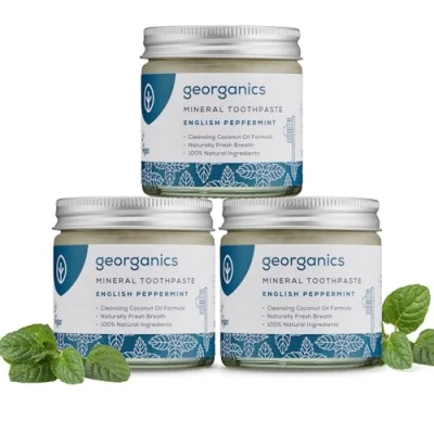 100% NATURAL TOOTHPASTE - APPROVED BY DENTISTS: Georganics mineral toothpaste is an all-organic coconut oil toothpaste specially developed to cleanse and remineralise teeth naturally. High in key minerals and free from fluoride, SLS and glycerine, it provides all-day protection and removes surface stains without being harsh on teeth. This 100% natural toothpaste is dentist approved and flavoured with organic peppermint oil for its cooling aroma and antibacterial properties. MINERAL-RICH FORMULA: This natural toothpaste contains a non-foaming formula of mineral-rich powders calcium carbonate and kaolin clay which support the natural remineralisation process, whilst gently polishing, detoxifying, strengthening and refreshing teeth. COSMOS ORGANIC, VEGAN & CRUELTY-FREE: Formulated without the use of nasty chemicals or synthetic additives, Georganics mineral toothpaste is made from 100% natural ingredients and is certified COSMOS organic, vegan and cruelty-free. HANDMADE IN THE UK; RECYCLABLE, BIODEGRADABLE & PLASTIC-FREE PACKAGING: Georganics range of natural oral-care products is made to protect your health and to have as little impact as possible on the environment. This organic mineral toothpaste comes in zero waste packaging made from recyclable materials. Georganics products are made from locally sourced ingredients to support UK businesses. Handmade in West Sussex, England. LONG-LASTING: This toothpaste can be used like any other. Simply apply a pea-sized amount of toothpaste onto your toothbrush and brush for 2 minutes, rinse well and apply twice a day. The toothpaste includes oil that has a cooling aroma and antibacterial properties. The pot provides a 120ml supply that will last 3 months for one person. Also available in a 60ml size, as well as in other flavours.