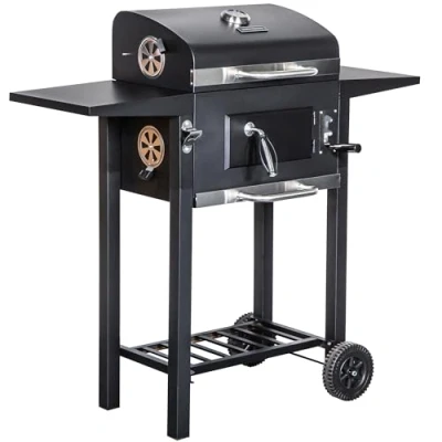 CurrysGet set for a sizzling garden party with the George Foreman Charcoal BBQ. Its large grilling surface has space for up to 12 juicy burgers at a time. Your friends and family don't have to wait for their turn. On its two cooking grids you can make beefy steaks and tender ribs side by side. And with its temperature gauge and thermometer, you'll get all the control to cook your meat to perfection. Good to know - Its two side shelves can hold your plates while the treats are cooking - Be it a spot of rain or a bit of bluster, its weatherproof cover keeps the BBQ safe - You can move it around easily on its 2 wheels