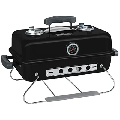 George Foreman Premium On The Go Portable Charcoal Barbecue, Two Part Rack, Adjustable Airflow, Portable, Simple Assembly, Camping and Travel BBQ with Heat Resist Carry Handle, GFPTBBQ1004B