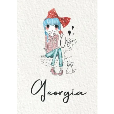 Georgia: Notebook A5 Personalized name Georgia Birthday gift for women, girl, mom, sister, daughter Cover: Fashion girl with cat 120 lined pages journal, small size (ca. 6 x 9 inches)