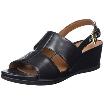 Geox Women's D Marykarmen A Wedge Sandal, Black, 4 UK