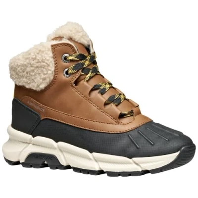 Geox Flexyper PLUS BOY Winter boots for kids, Size: 1.5, Brown/yellow shoes