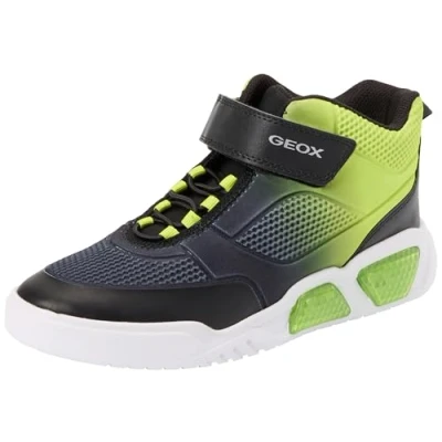 Geox Illuminus BOY Light UP Hightop trainers for kids, Size: 5, Black/lime Textile/synthetics