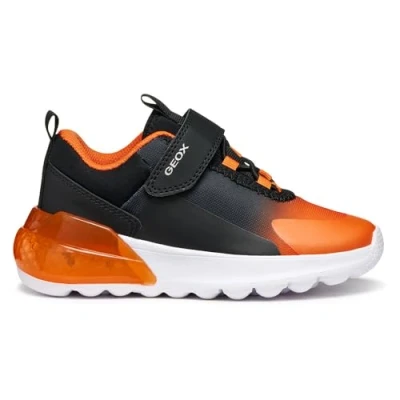 Geox J ACTIVART ILLUMINUS Sneaker, Black/Orange, 13 UK