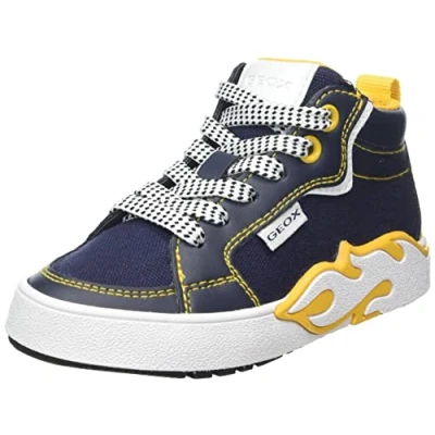 Geox J Alphabeet Boy Sneaker, Navy Yellow, 1.5 UK