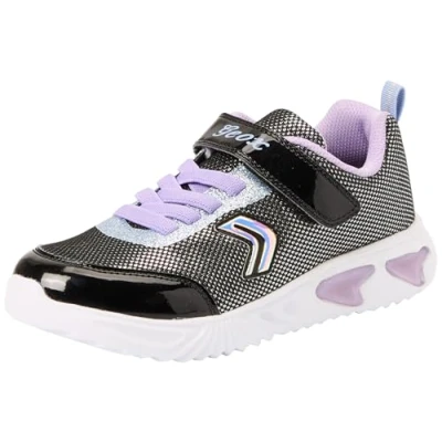Geox J Assister Girl A Sneaker, Black/Lilac, 5 UK Child
