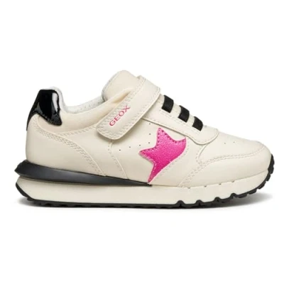 Geox J FASTICS Girl Sneaker, White/Black, 7 UK Child