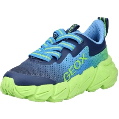 Geox J FLEXYPER Fast Boy Trainers, LT Blue/Lime, 35 EU