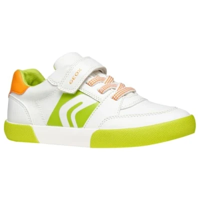 Geox J GISLI BOY D Sneaker, White/Green Fluo, 2 UK