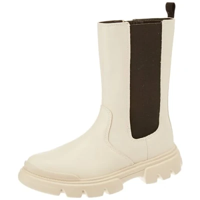 Geox J Junette Girl G Ankle Boot, LT Ivory/Black, 5 UK
