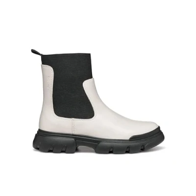 Geox J Junette Girl C Chelsea Boot, LT Ivory/Black, 1 UK