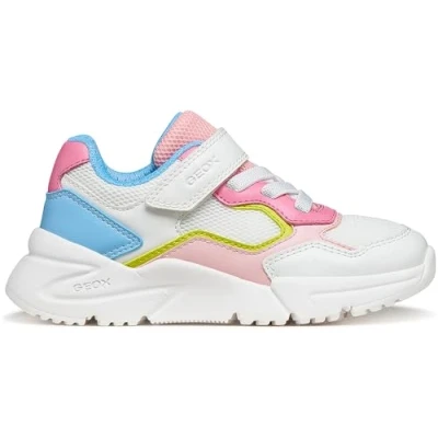 Geox J Loftus Girl B Trainers, White/Pink, 33 EU