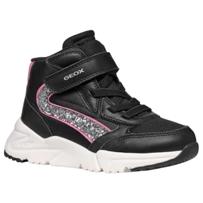 Geox J Loftus Girl D Sneaker, Black, 10 UK Child