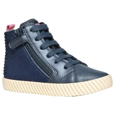 Breathable: Geox J Mirroless Girl A Sneaker features breathable material for comfortable wear Closure type: Equipped with a zip closure for easy on and off Shoe type: Classified as an athletic shoe, designed for casual use Color: Displaying a blue hue, perfect for matching various outfits Size: Available in 10 UK Child size, suitable for growing feet Material: Crafted with synthetic outer material for durability Sole material: Features a rubber sole for grip and traction Heel type: Designed with a flat heel for stability and comfort Target audience: Ideal for girls or female children Style: Showcasing a sneaker style, perfect for casual outings