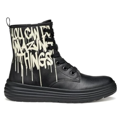 Geox J Phaolae Girl Ankle Boot, Black Lt Ivory, 10 UK Child