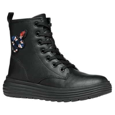 Stylish Ankle Boot: Showcase your child's fashion sense with these calf-high Geox J Phaolae Girl D ankle boots, designed for girls in the big kid age group Premium Synthetic Material: These black, mid-top combat boots are made of high-quality synthetic material, ensuring durability and comfort Zip Closure Type: Equipped with a convenient zip closure, making it easy for your child to put on and take off these shoes Flat Heel Type: Ideal for everyday wear, these ankle boots feature a flat heel, ensuring stability and ease of movement for your child Rubber Sole Material: Features a rubber sole, providing excellent grip and traction for your child, perfect for various surfaces