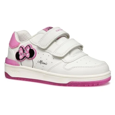 Geox J WASHIBA Girl B Sneaker, White/Fuchsia, 4.5 UK