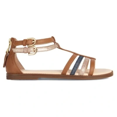 Geox JR Karly Sandals for kids, Size: 3, Cognac/avio Synthetics/textile