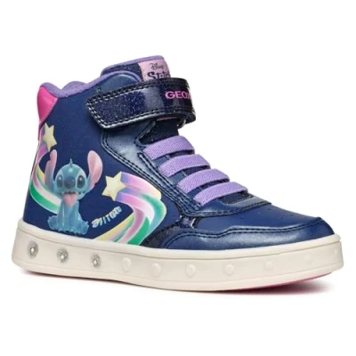 Geox LILO Stitch Skylin GIRL Light UP Hightop trainers for kids, Size: 7.5K, Navy/fuchsia Imitation leather/ textile