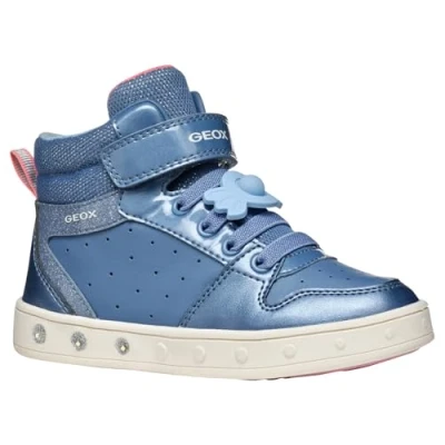 Geox Skylin GIRL Light UP Hightop trainers for kids, Size: 10K, Dark sky/light coral Imitation leather/ textile