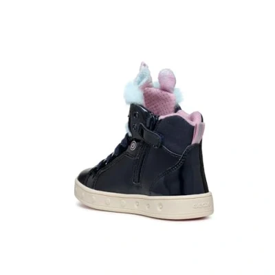 Geox Skylin GIRL Light UP Hightop trainers for kids, Size: 7.5K, Navy/multicolor Imitation leather/ textile