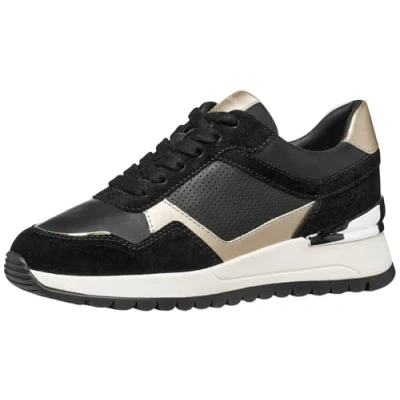 Geox Women D Desya A Sneaker, Black Lt Gold, 6 UK