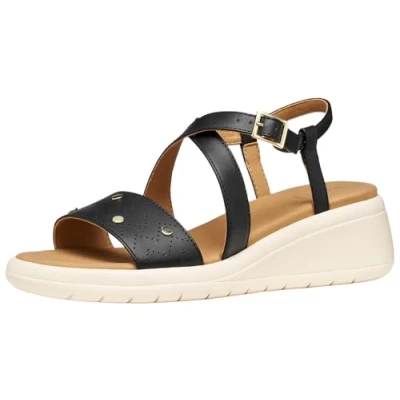 Geox Women D Meliconia A Wedge Sandal, Black, 6 UK