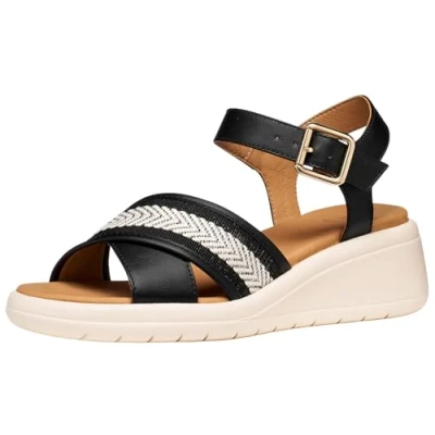 Geox Women D Meliconia G Wedge Sandal, Black, 6 UK