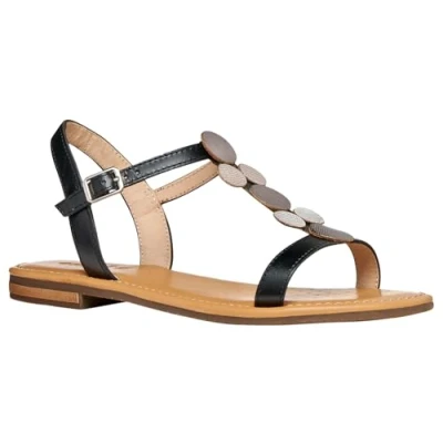 Geox Women D Sozy S E Flat Sandal, Black Gun, 8 UK