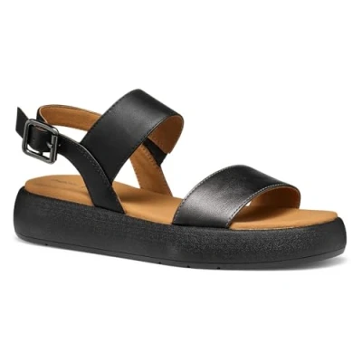 Geox Women's D CAMALEI A Flat Sandal, Gun/Black, 7.5 UK