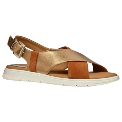 Geox Women's D DANDRA B Flat Sandal, Lt Gold/Lt Taupe, 2.5 UK
