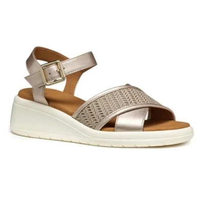 Geox Women's D MELICONIA G Wedge Sandal, Champagne/Skin, 2.5 UK