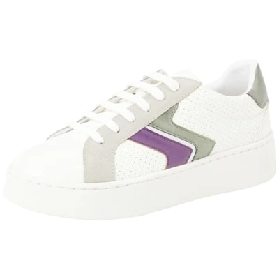 Geox Women's D Skyely A Sneaker, Optic White Purple, 6 UK